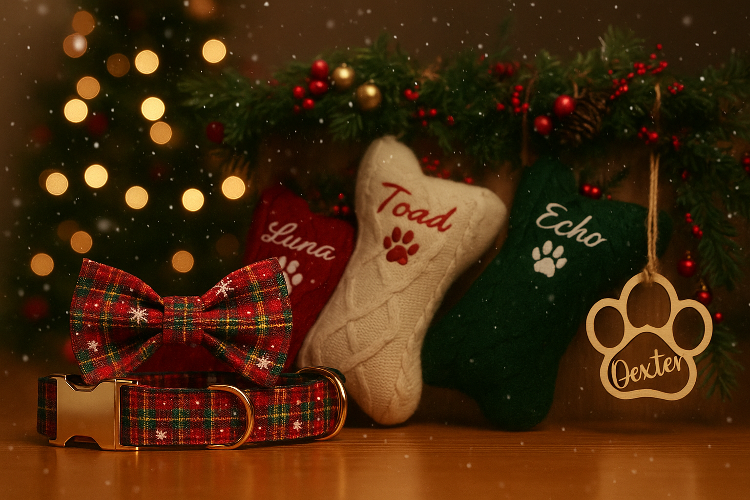 Discover personalised collars, harnesses, stockings & baubles all made for festive adventures.