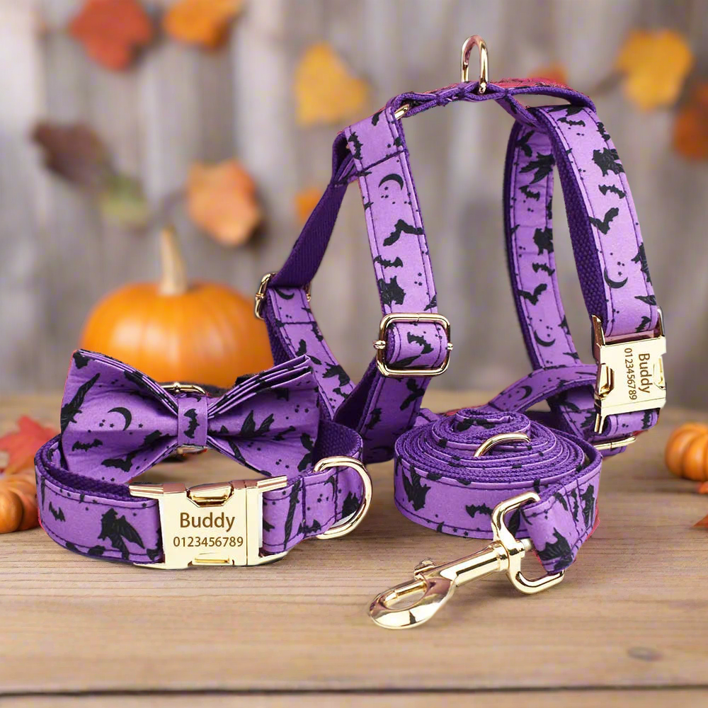 Padded, adjustable designs for comfy, calm walks. Engraved collars & personalised harness options available.