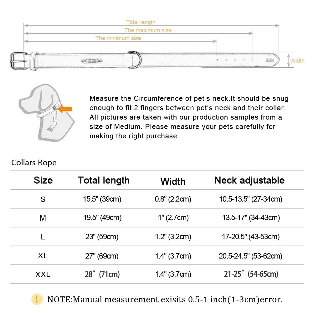 Note: Measure your dog’s neck and leave a 2-finger gap for comfort.